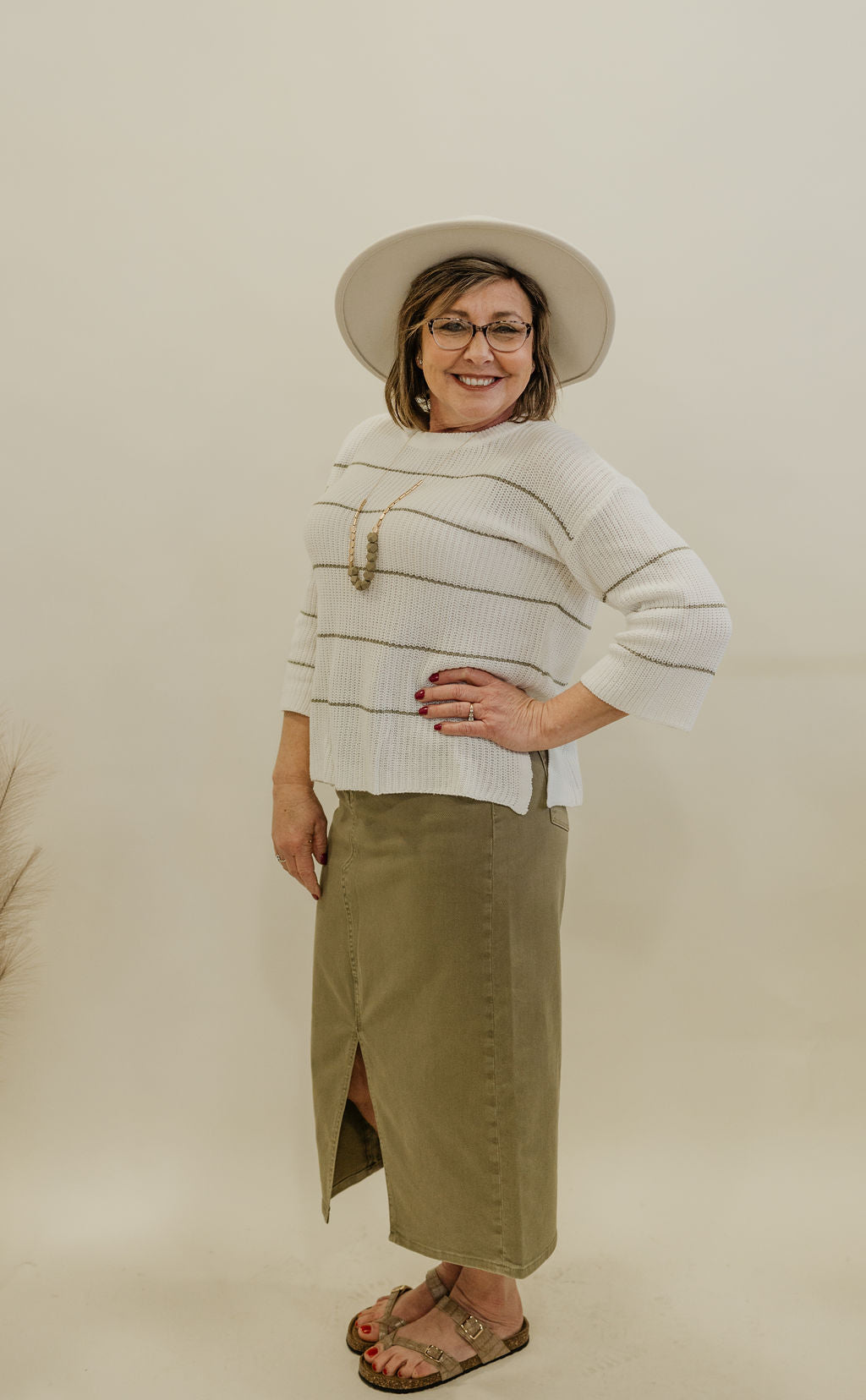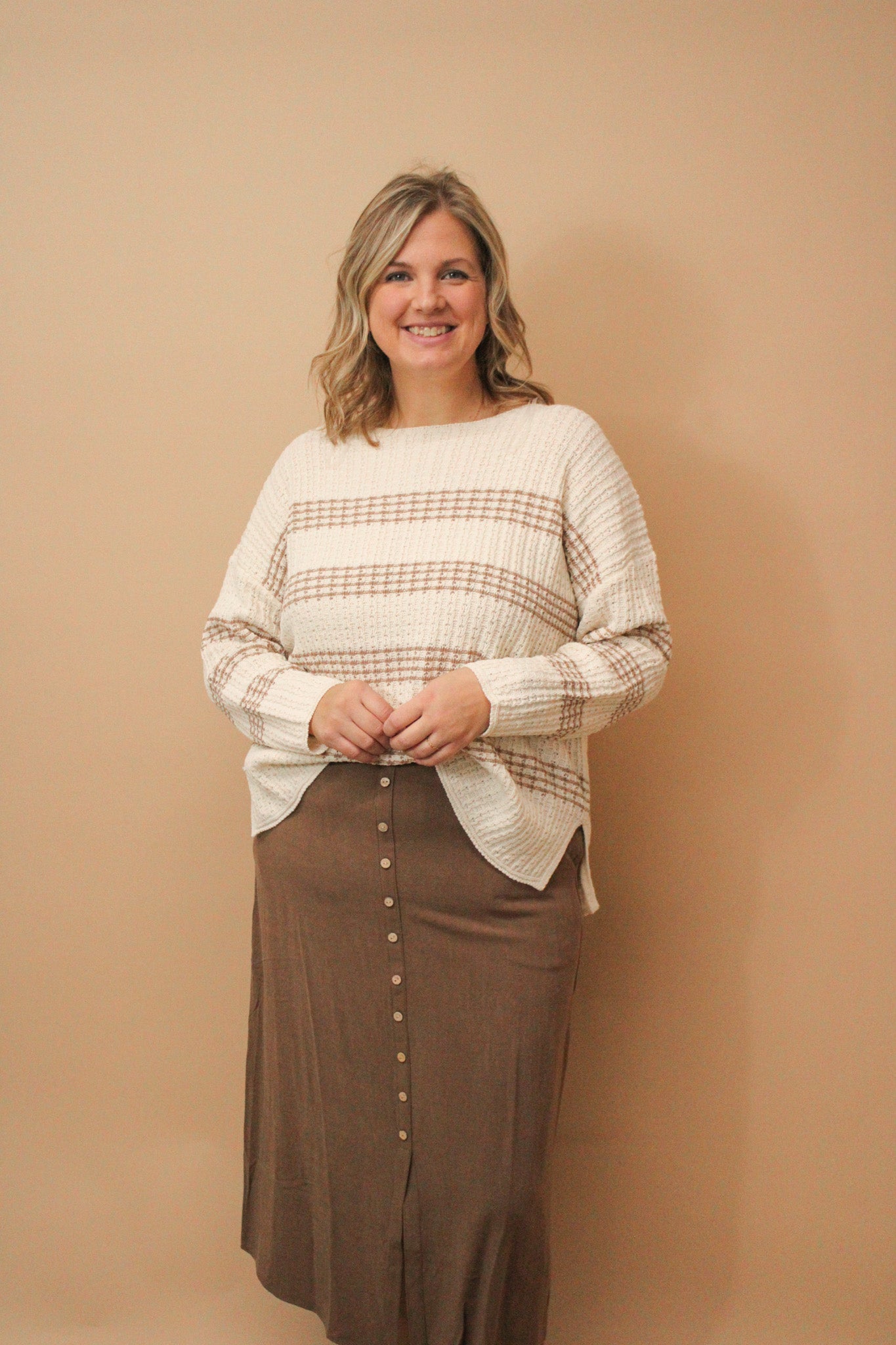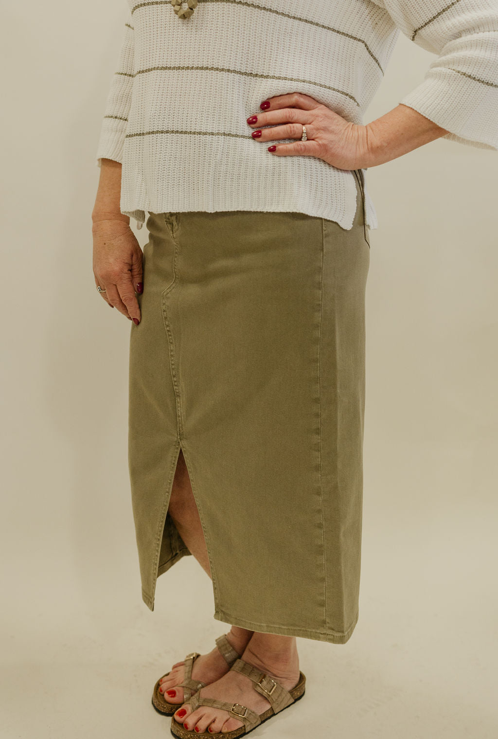 MILLIE REG/CURVY STRIPED MIDI SKIRT