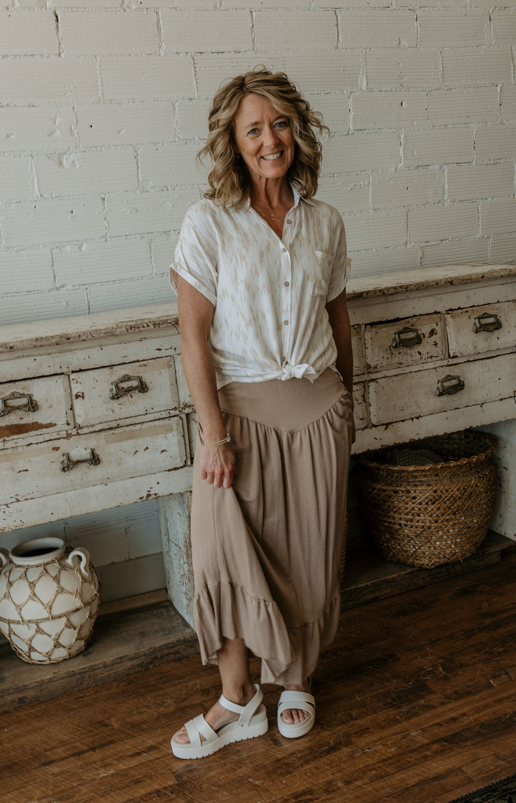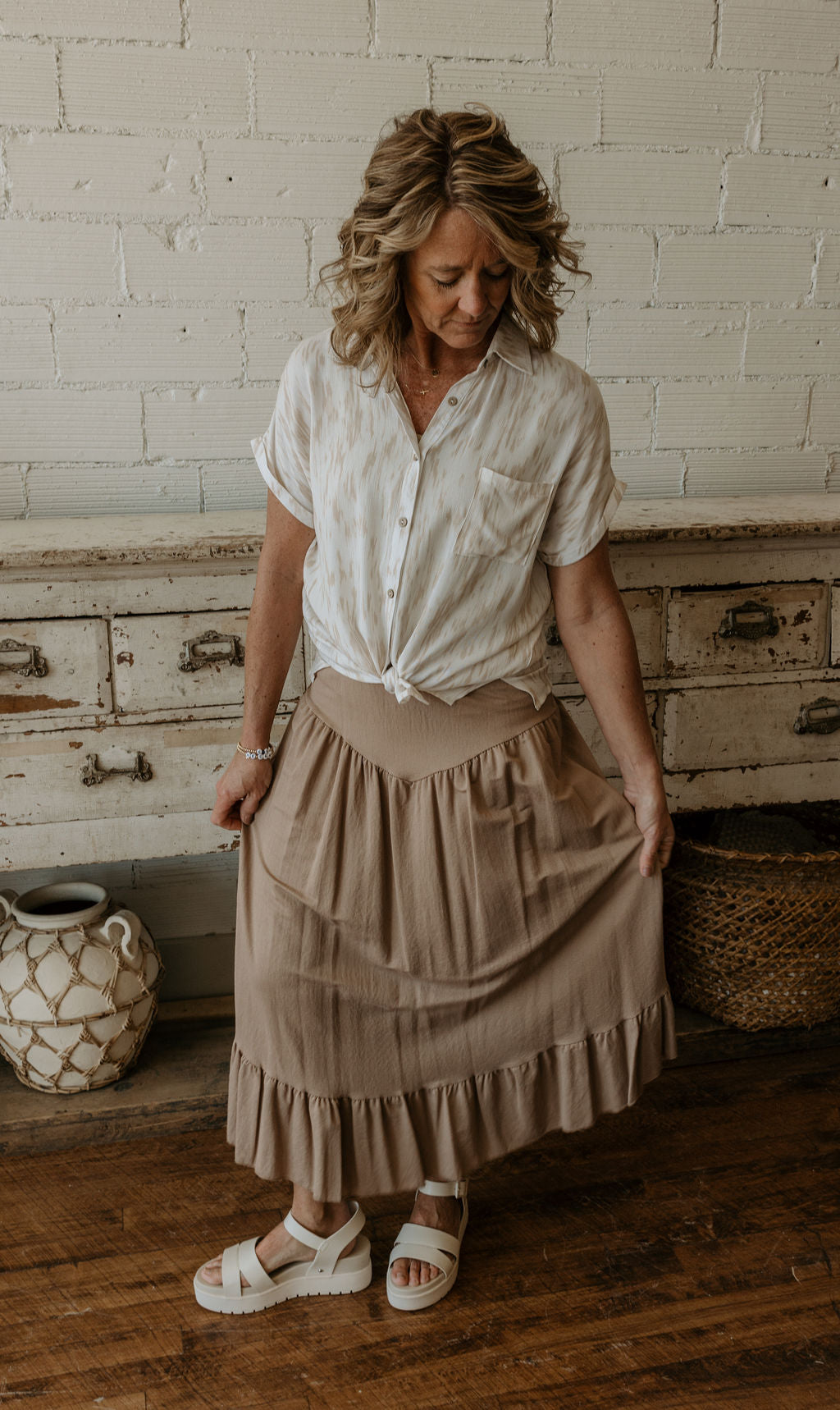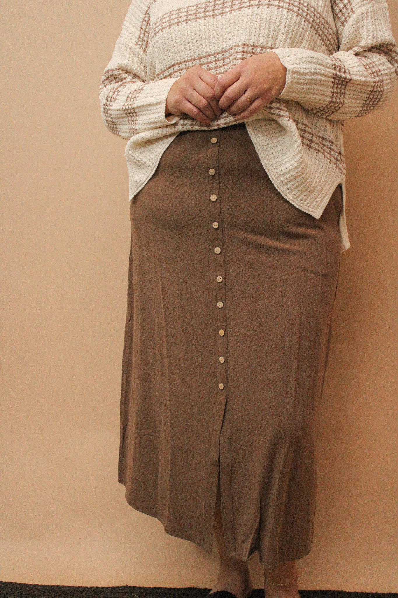 CAYDEN BUTTON UP LINEN MIDI SKIRT