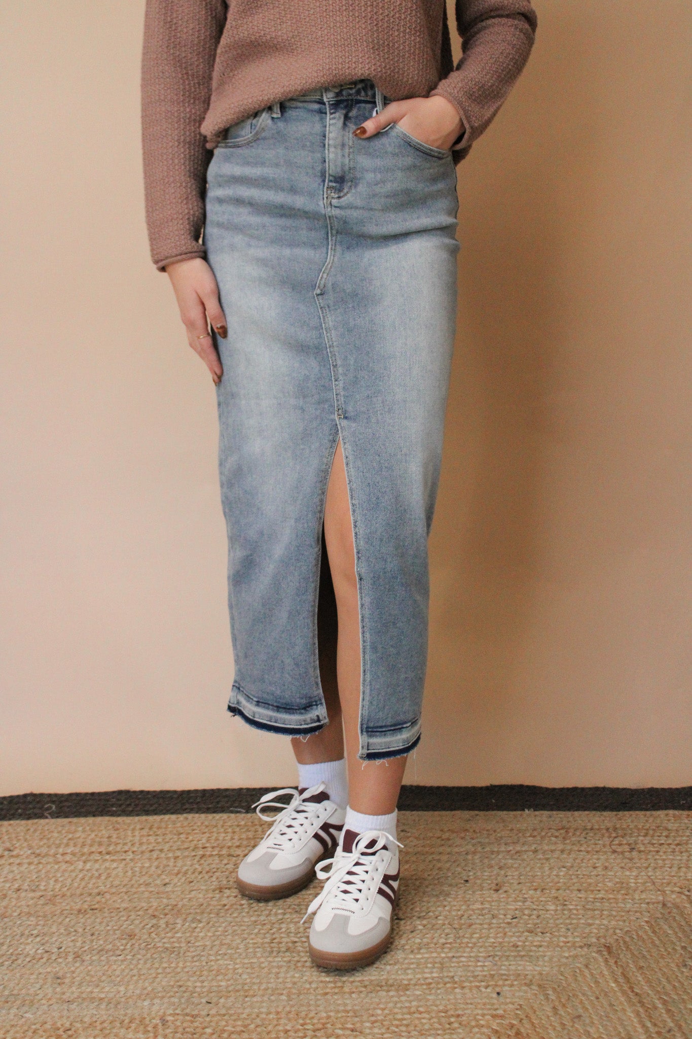 RILEE SOLID MAXI SKIRT WITH SIDE SLITS 2 COLOR OPTIONS