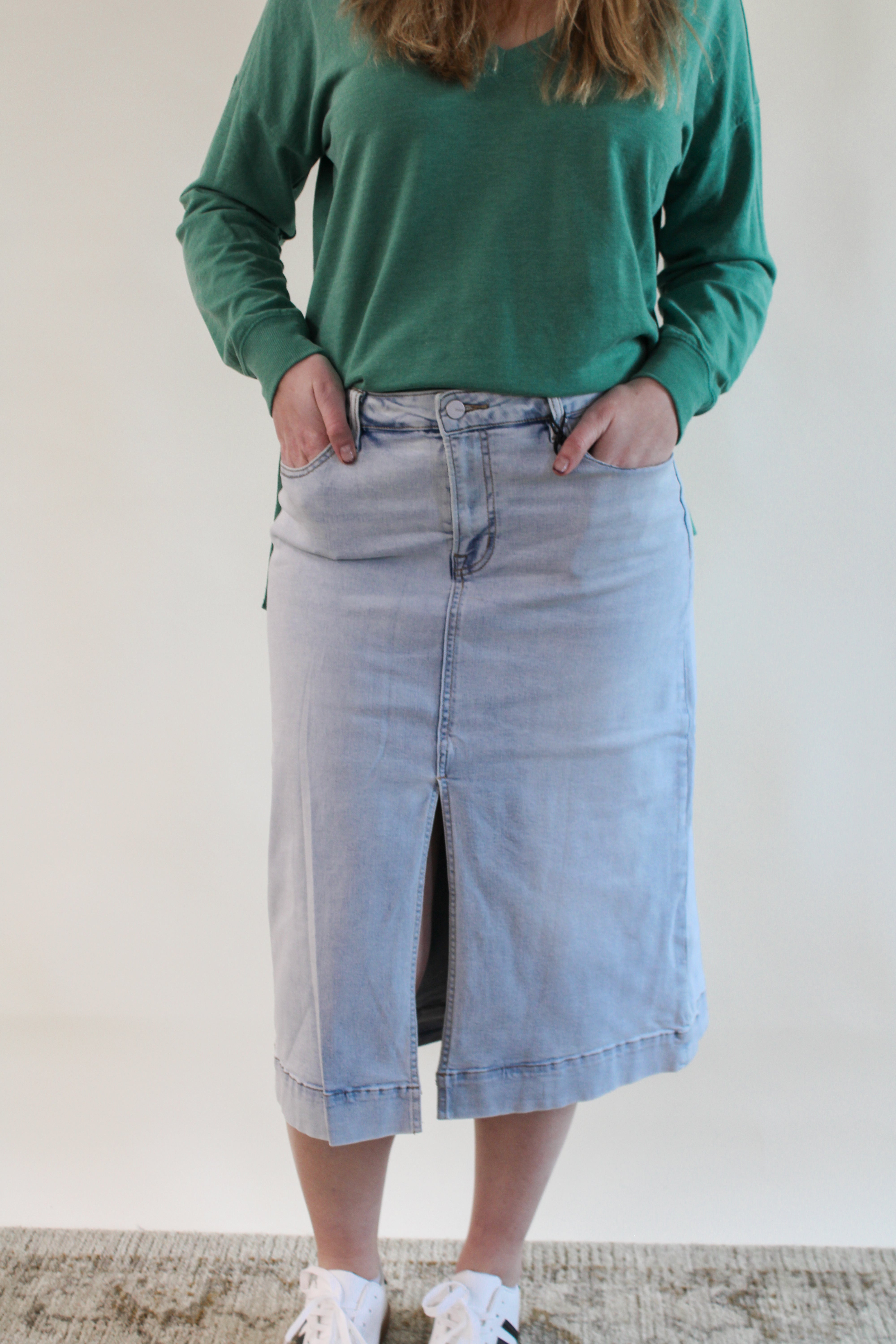 SHELLY MOSS GREEN DENIM SKIRT
