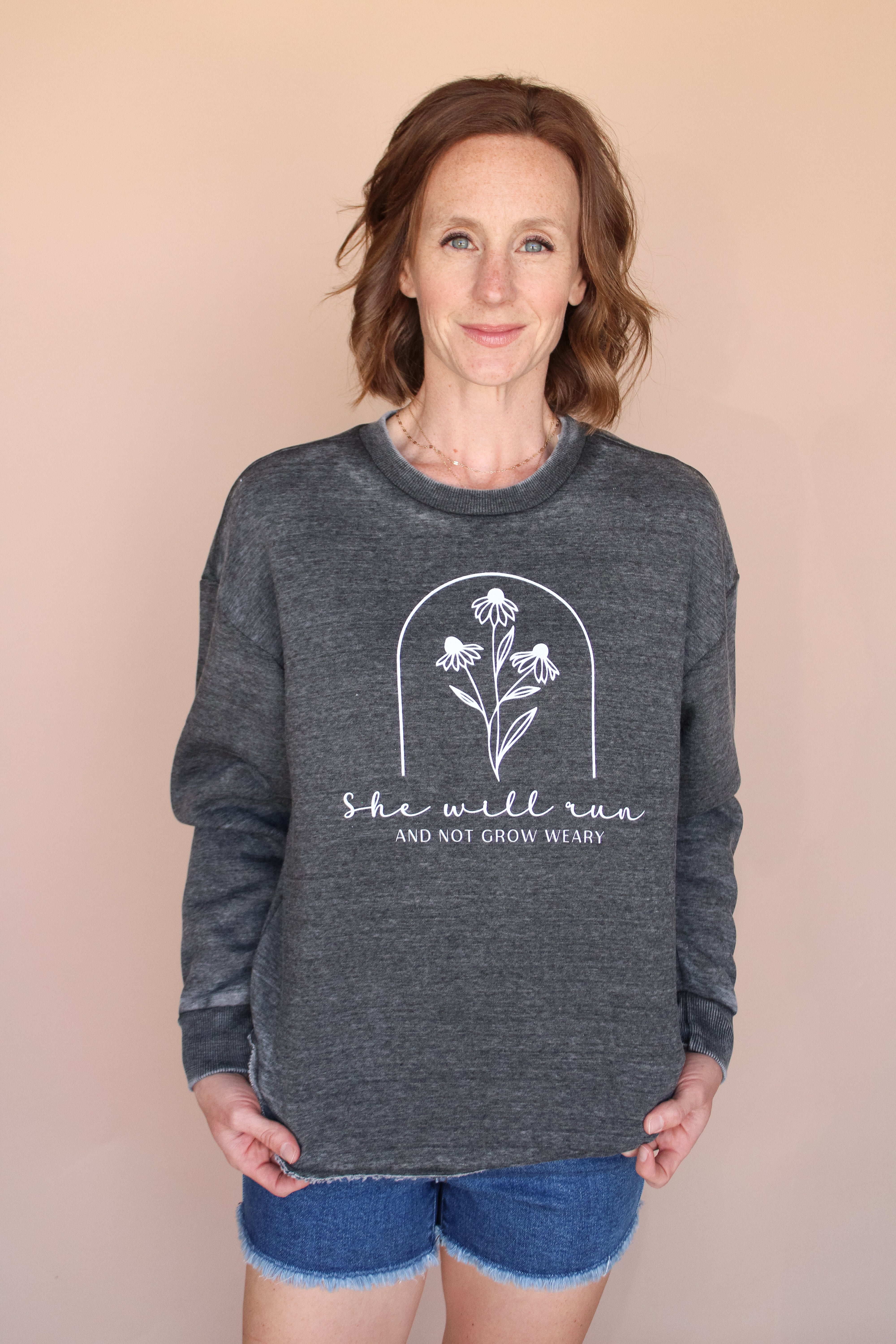 SHE WILL RUN AND NOT BE WEARY FLEECE PULLOVER