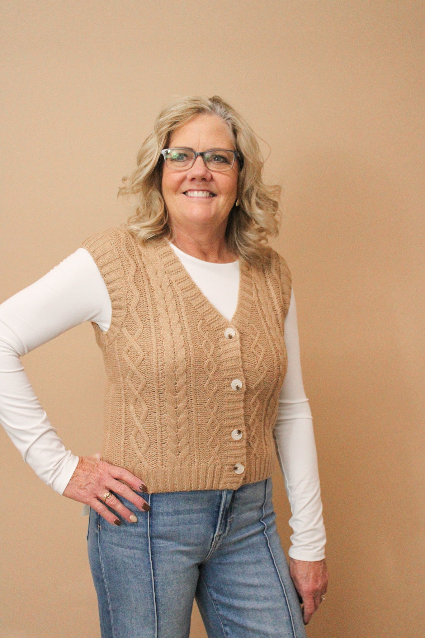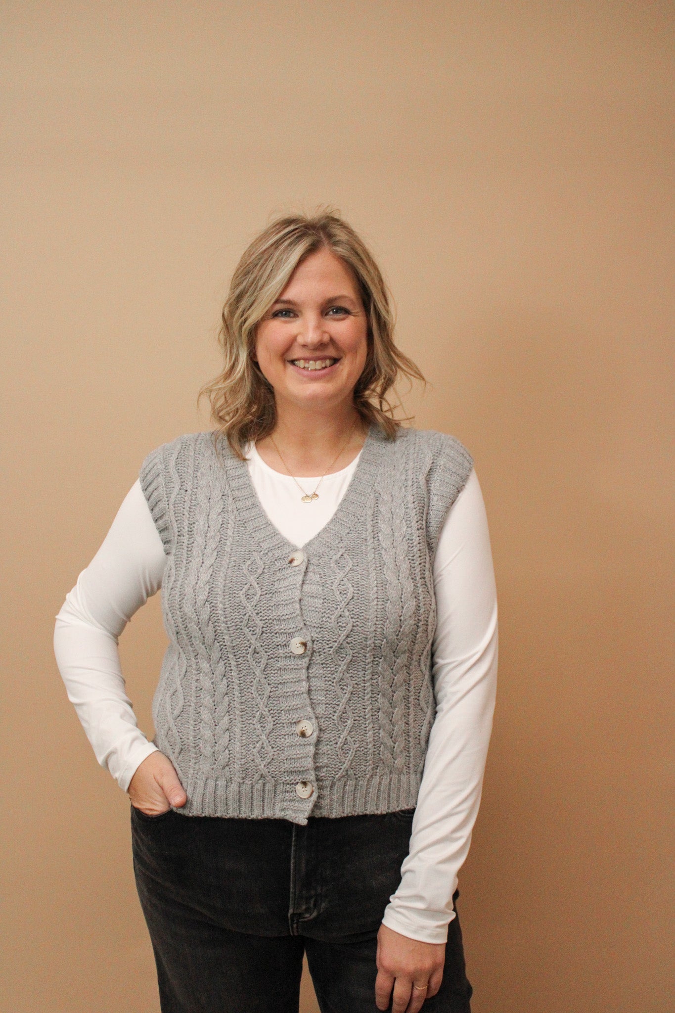 JEAN CHUNKY CABLE KNIT V-NECK VEST