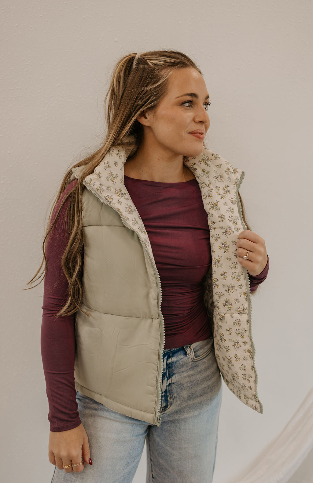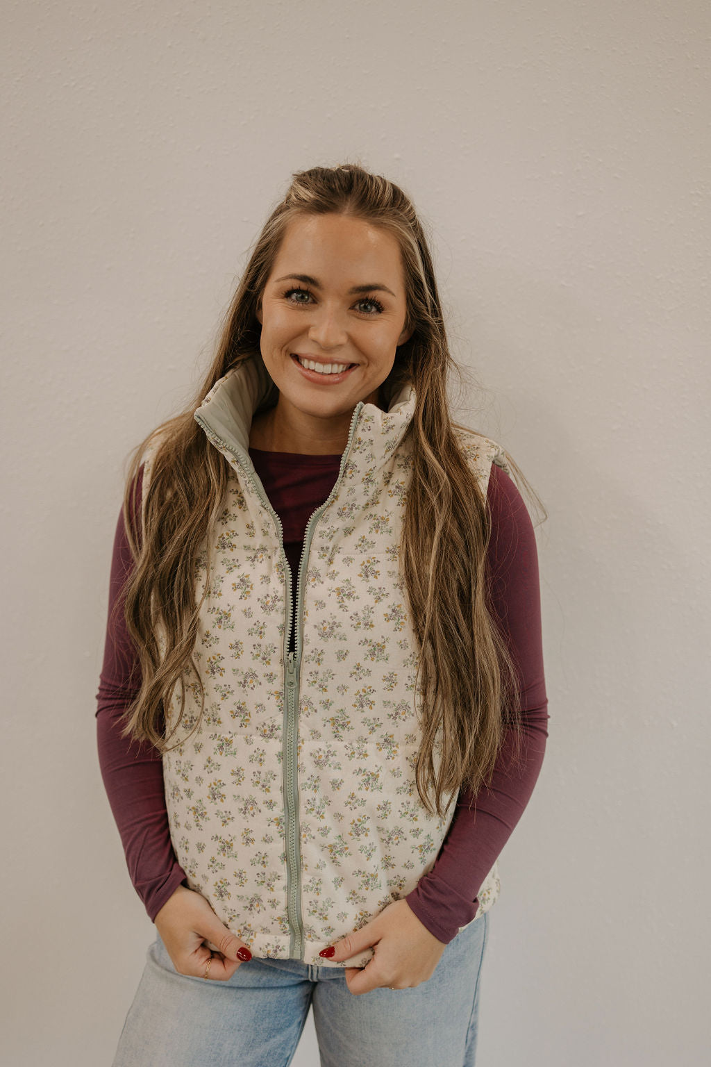 Get ready to make a statement with the HESTER REVERSIBLE FLORAL VEST. With its unique REVERSIBLE FLORAL PUFFER design and functional ZIP CLOSURE and SIDE POCKETS, this vest is both stylish and practical. Made with 85% COTTON and 15% LINEN, it's comfortable and versatile. Perfect for those who like to mix things up!